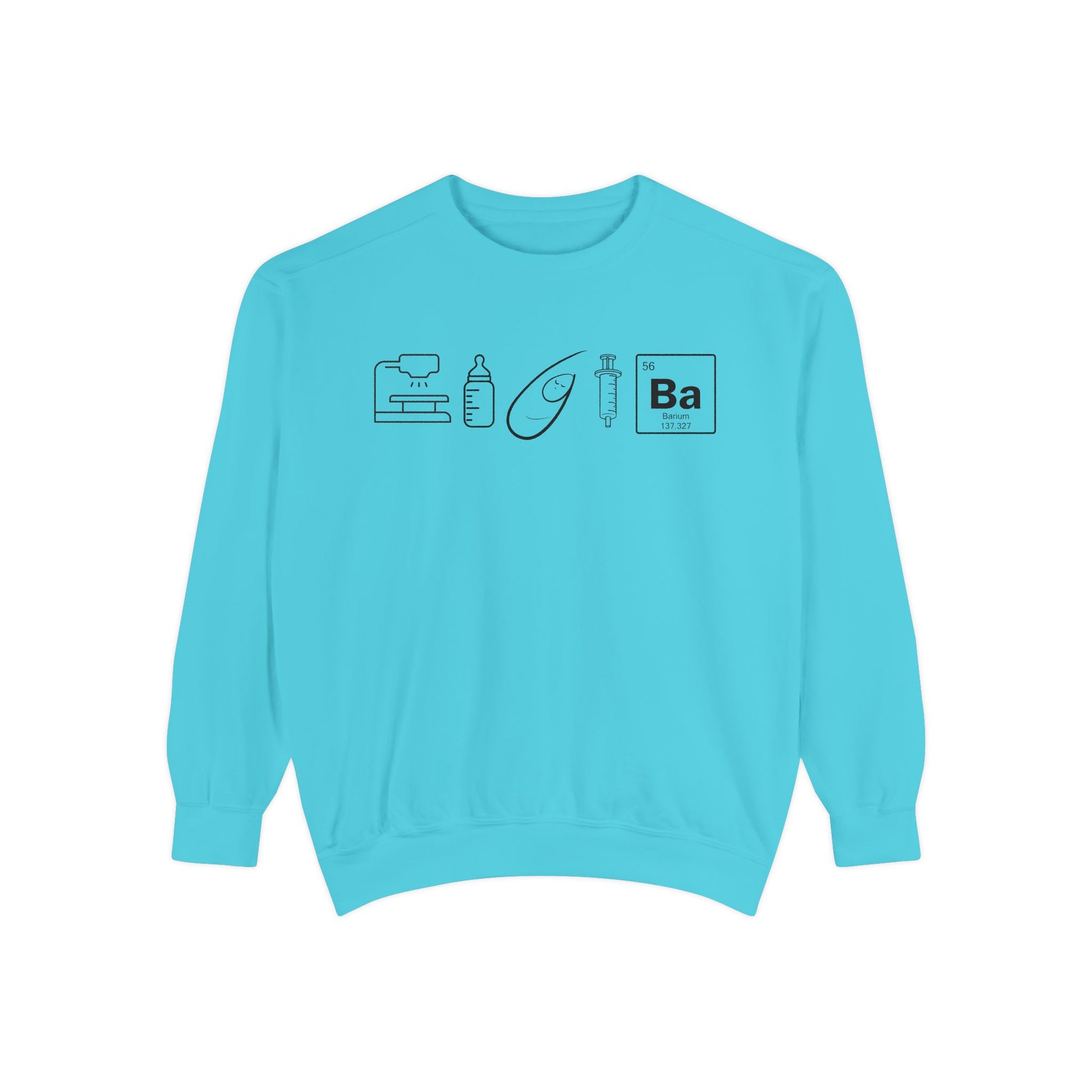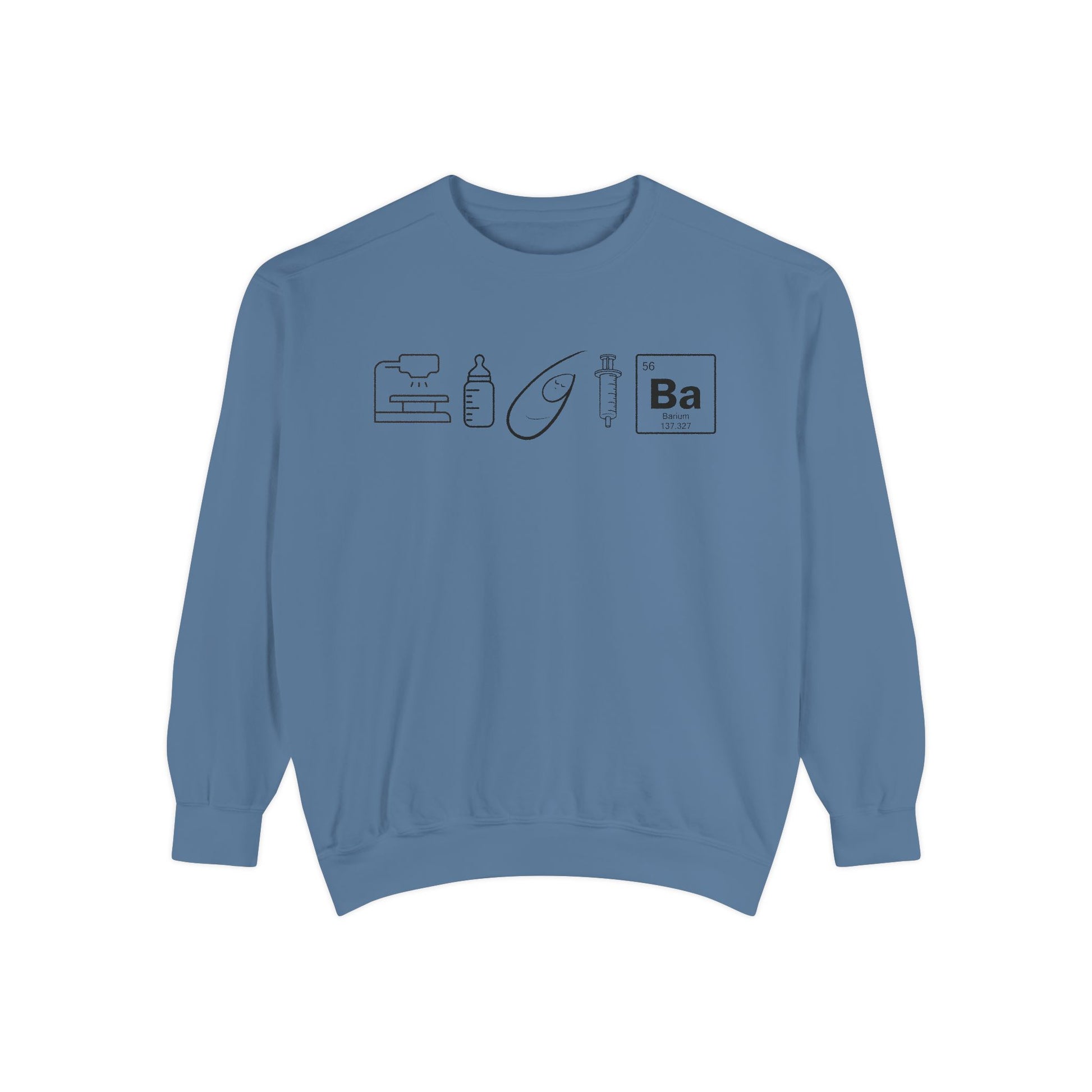 Celebrate your passion for neonatal and pediatric care with a subtle, stylish sweater designed for speech-language pathologists working in the NICU. This unique design features five discreet icons—an X-ray table, baby bottle, swaddled baby Paulphagia logo, 10cc syringe, and barium element symbol—arranged with minimalistic detail for a clean, modern look.