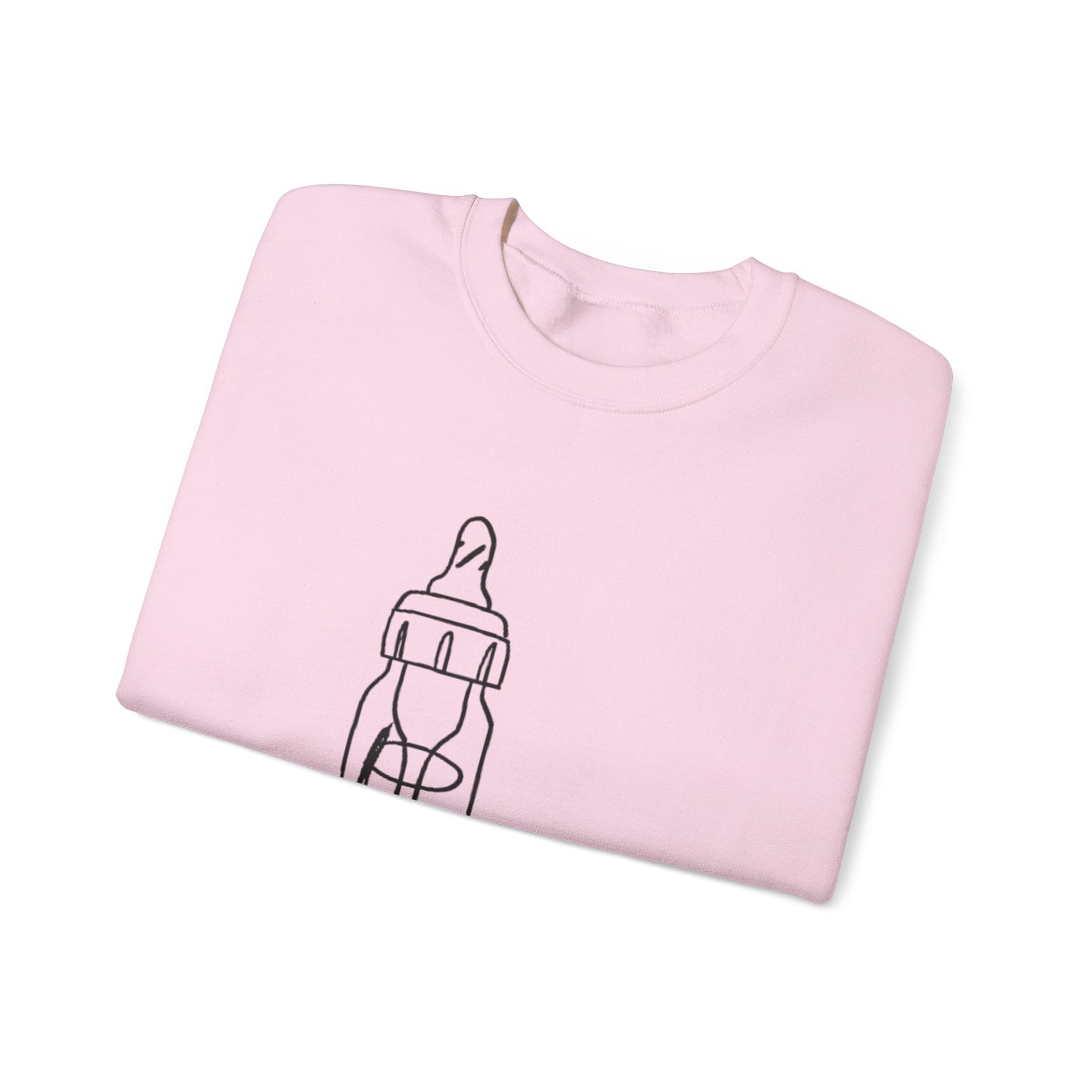 A hand-drawn baby bottle design to support nicu feeding therapy and general dysphagia awareness. This sweatshirt exudes comfort and durability, making it perfect for adults looking for a cozy and stylish piece. Relevant for NICU awareness month and feeding therapy awareness.